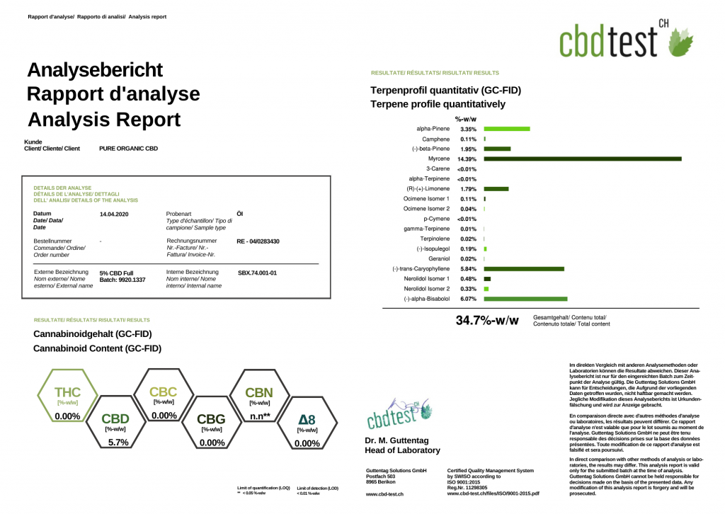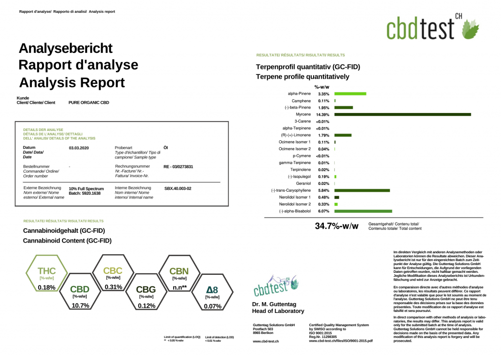 We get it, not everybody is a scientist. We make our lab report easy to understand. At the bottom left corner, you will find the cannabinoid content by percentage. Usually our products are slightly over their stated strength. You can also find the other beneficial compounds like CBC and CBG.